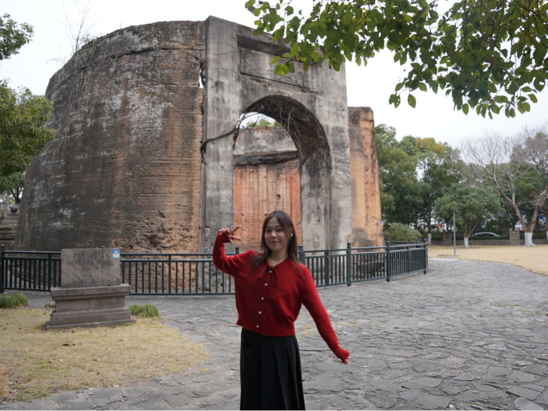 咱们来到鳌柱塔下,沿着“振翅高飞”火红的台阶登高,不错爬上塔,远眺镇海老城,远望甬江入海口。