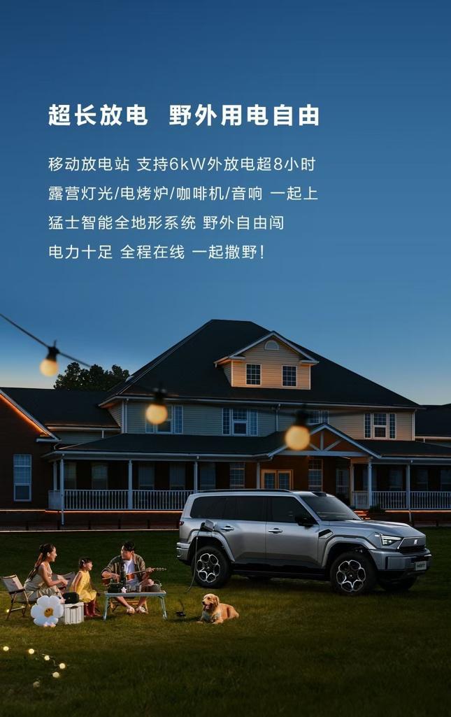 全场景动力基地:抵达目的地后,猛士 M817 Max+ 版的 6kW 外放电功能,能因循长达 7-8 小时的户外用电,果然达成露营“用电解放”。从照明、烹调到影音文娱,郊野糊口不再是拼凑,而是一种精致的享受。